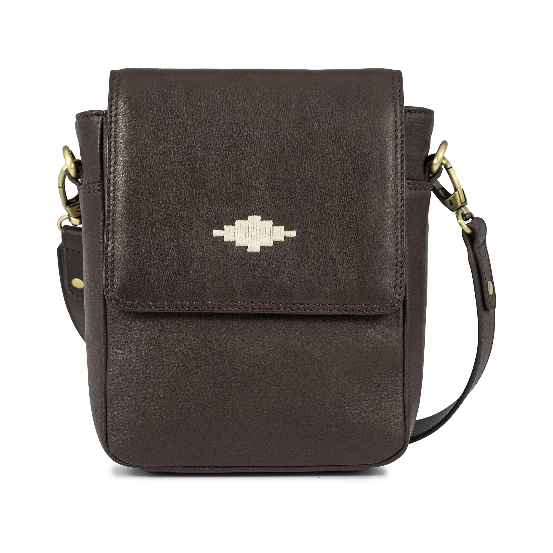 Bandolera Crossbody Bag - Brown Leather with Cream Stitching