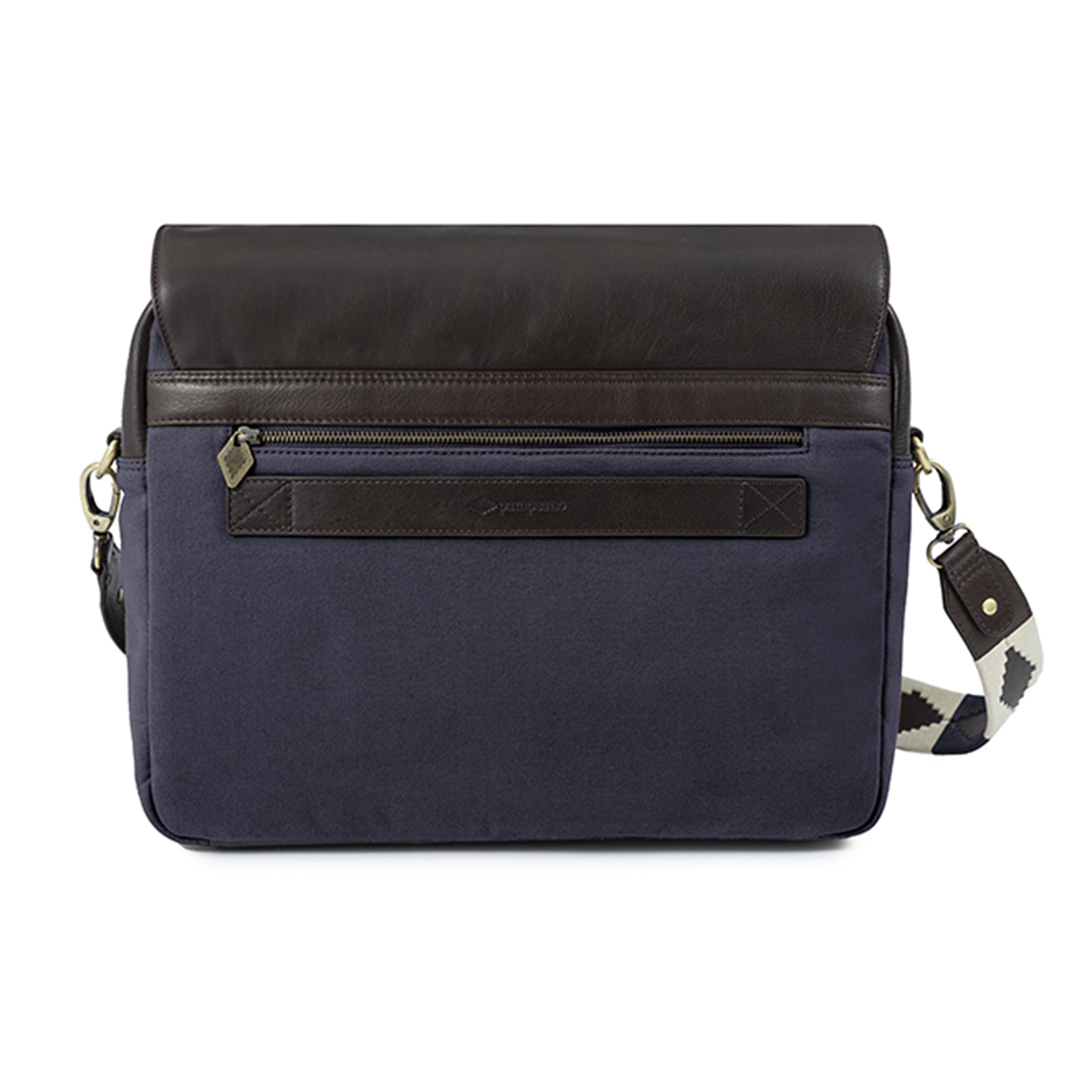 Entregar Messenger Bag - Brown Leather and Navy Canvas