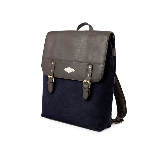 Mochila Backpack - Brown Leather with Navy Canvas