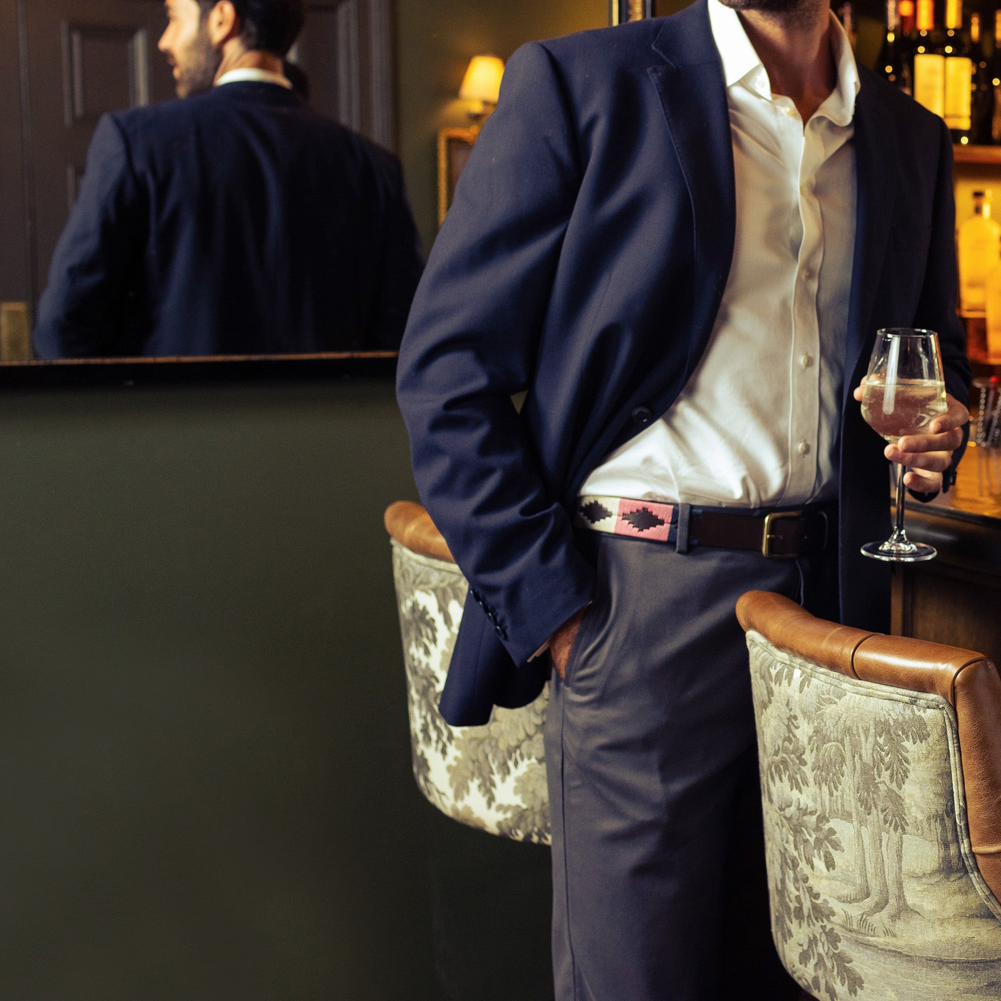 The striking contrast of the rich navy threads and Havana brown leather complements the soft pink and cream and is the perfect choice to complete an array of different outfits, whether it be casual wear, smart, evening, uniform or equestrian.