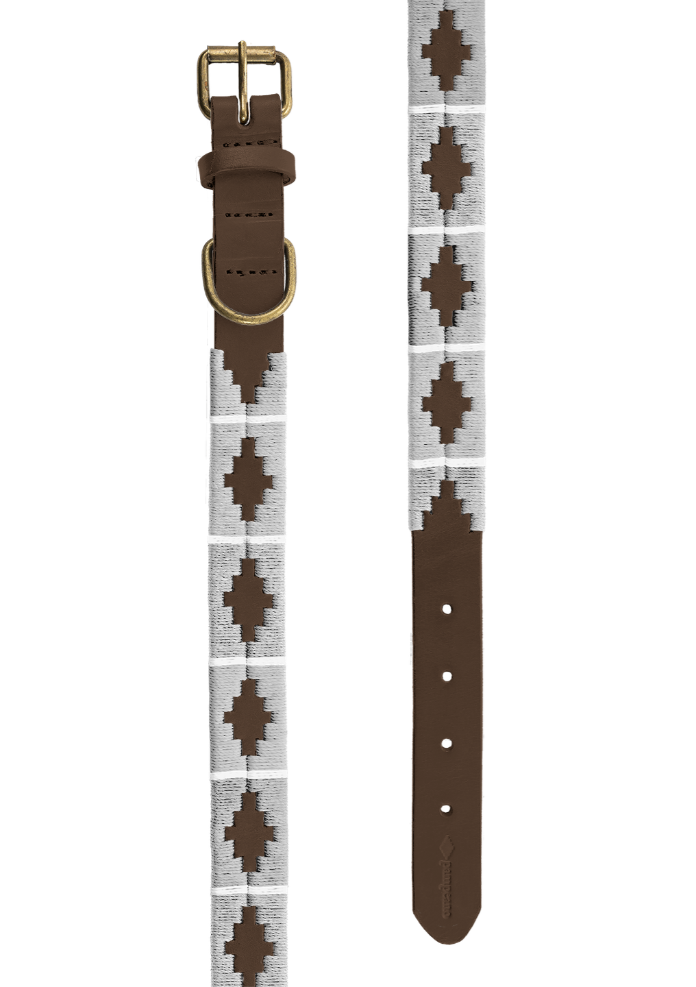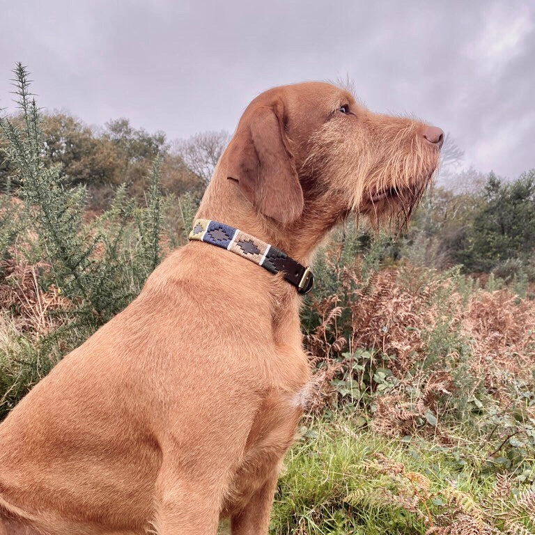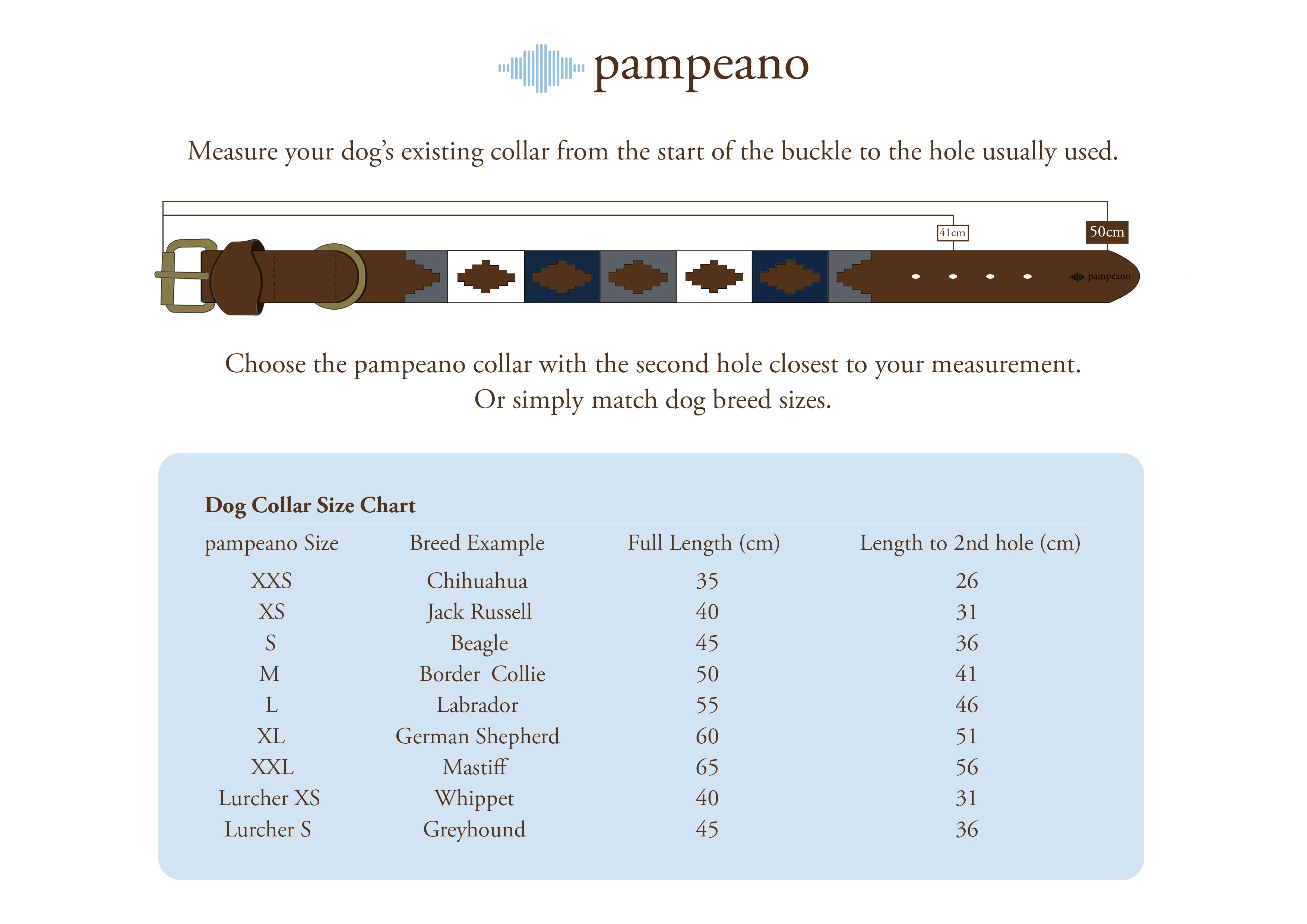 Our bespoke dog collar, Carmen, offers a variety of customisation options. Firstly, choose your desired length and then select the collar style from up to 5 colours. Next, decide on your buckle type - antique brass or silver. Then, choose the leather type from Havana Brown, Black, or London Tan. Finally, personalise your collar even further by selecting from our range of 48 thread colours. With endless possibilities, create a truly unique and personalised collar for your beloved dog.