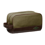 Hombre Washbag - Brown Leather and Forest Canvas with Dark Green Stitching