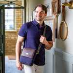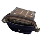 Bandolera Crossbody Bag - Brown Leather and Navy Canvas