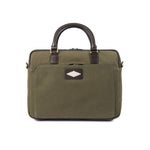 Built from tough forest green canvas and rich leather accents, this laptop briefcase is made to accompany your adventures— whether navigating city streets or off-the-grid escapes. With a structured, clean design and secure space for laptops, documents, and essentials, it blends practical design with timeless aesthetics.