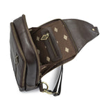 Named after the Spanish word for “small,” the Pequeno is a small sling bag for men. Crafted from vegetable-tanned leather, it features four zip compartments— including a spacious main section, card slots, and quick-access pockets front and back. An adjustable leather strap and solid brass hardware ensure a reliable build and comfort, while subtle hand-stitched details nod to craftsmanship.