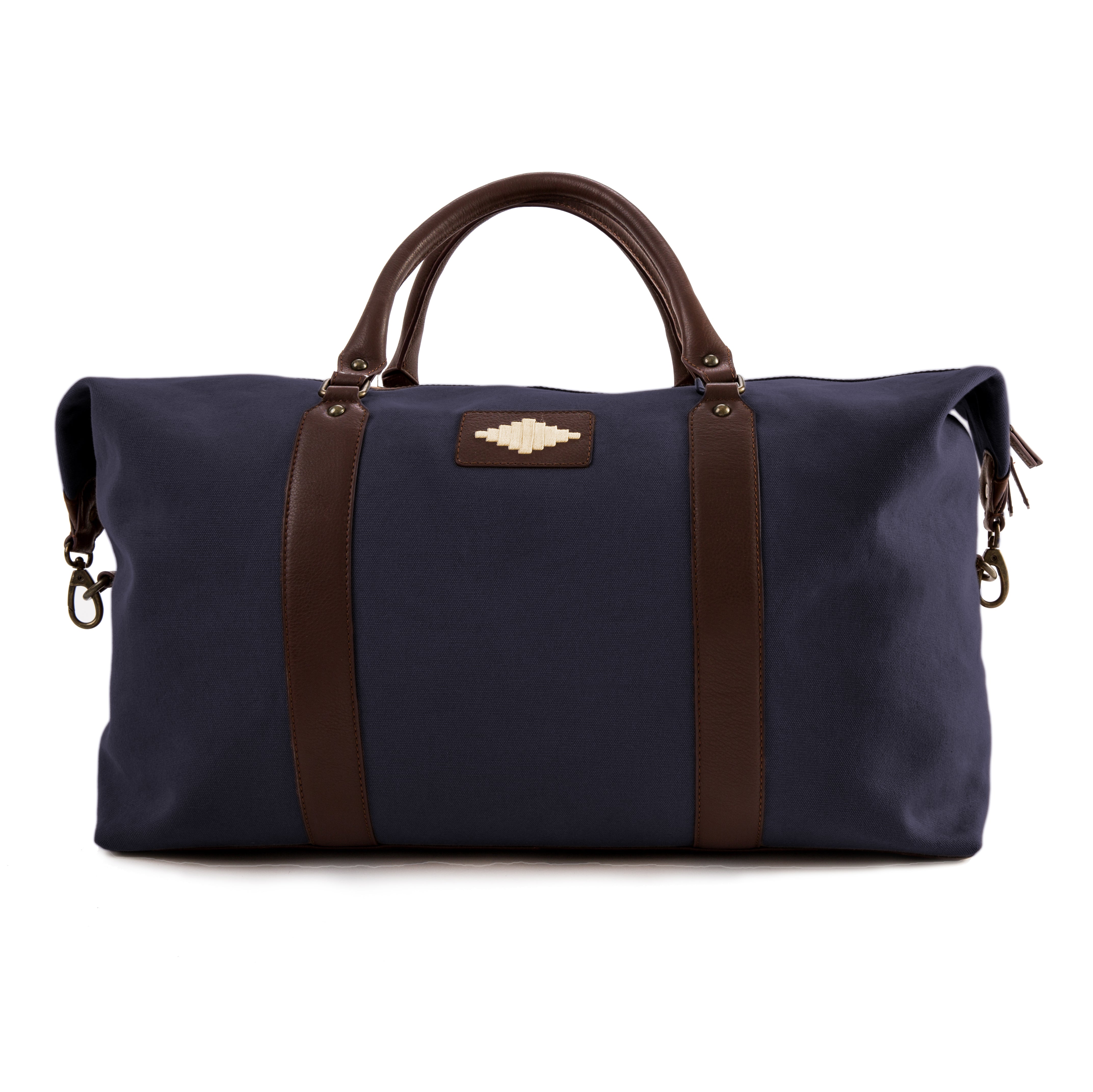 The Caballero men’s holdall bag blends Havana brown leather with navy canvas in a design inspired by the relaxed lifestyle of the Argentinian pampas. Perfect for cabin luggage, its understated design is elevated by a hand-stitched pampa motif.