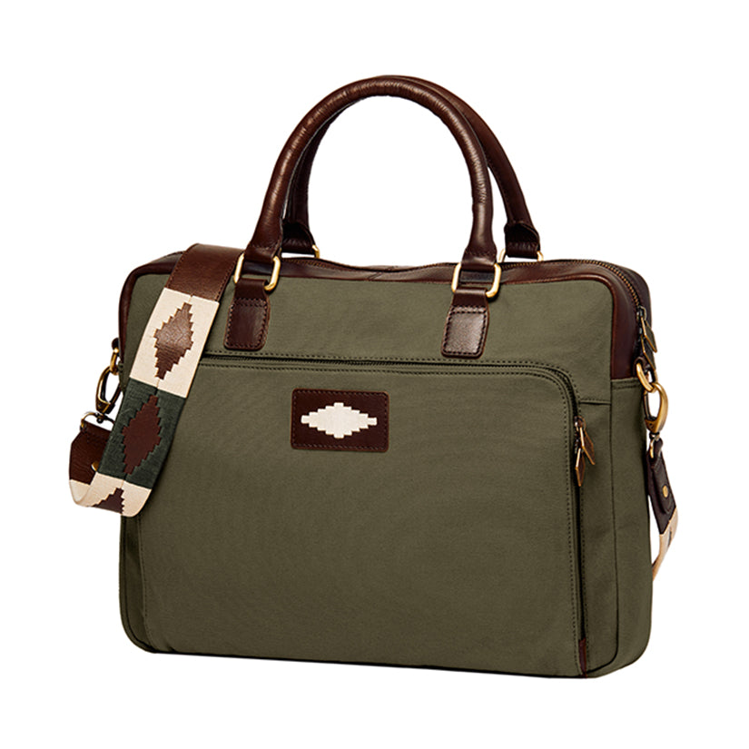 Mensajero Briefcase - Brown Leather and Forest Canvas