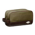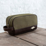 Hombre Washbag - Brown Leather and Forest Canvas with Cream Stitching