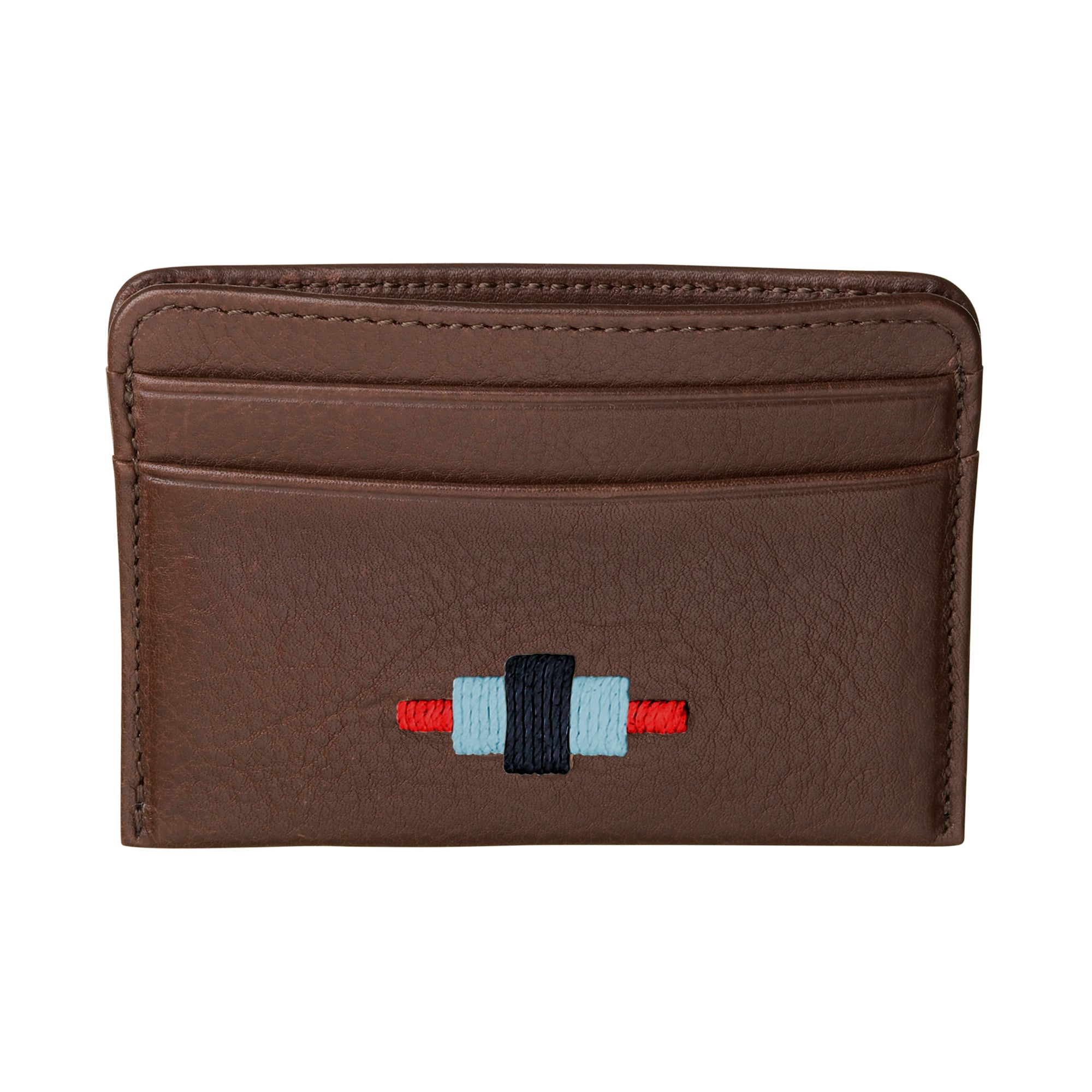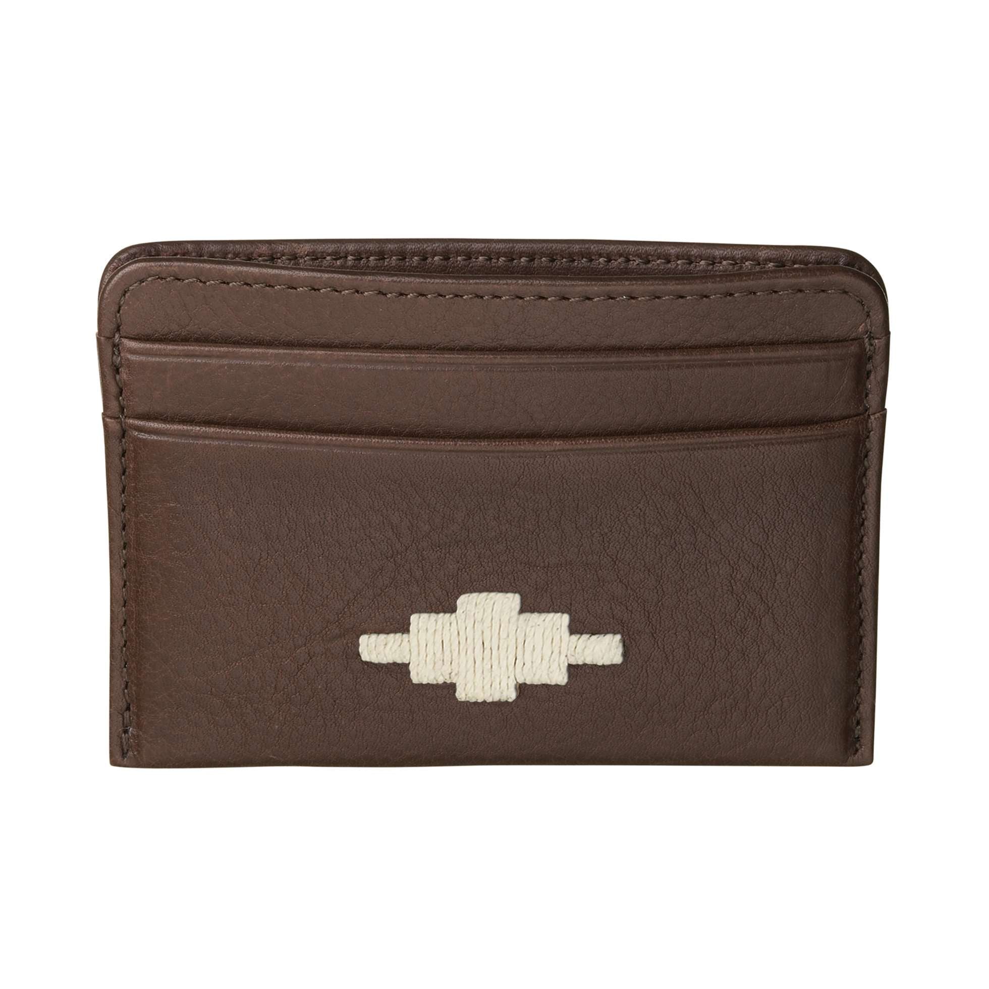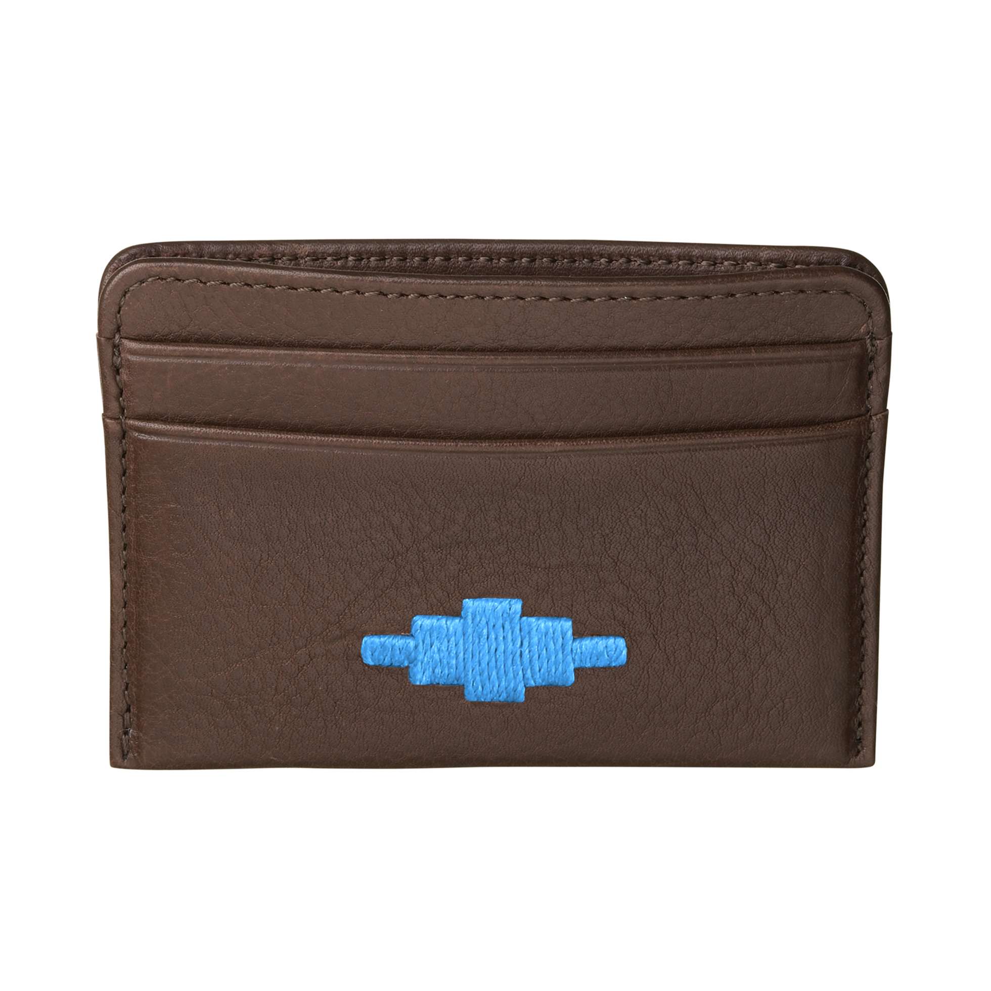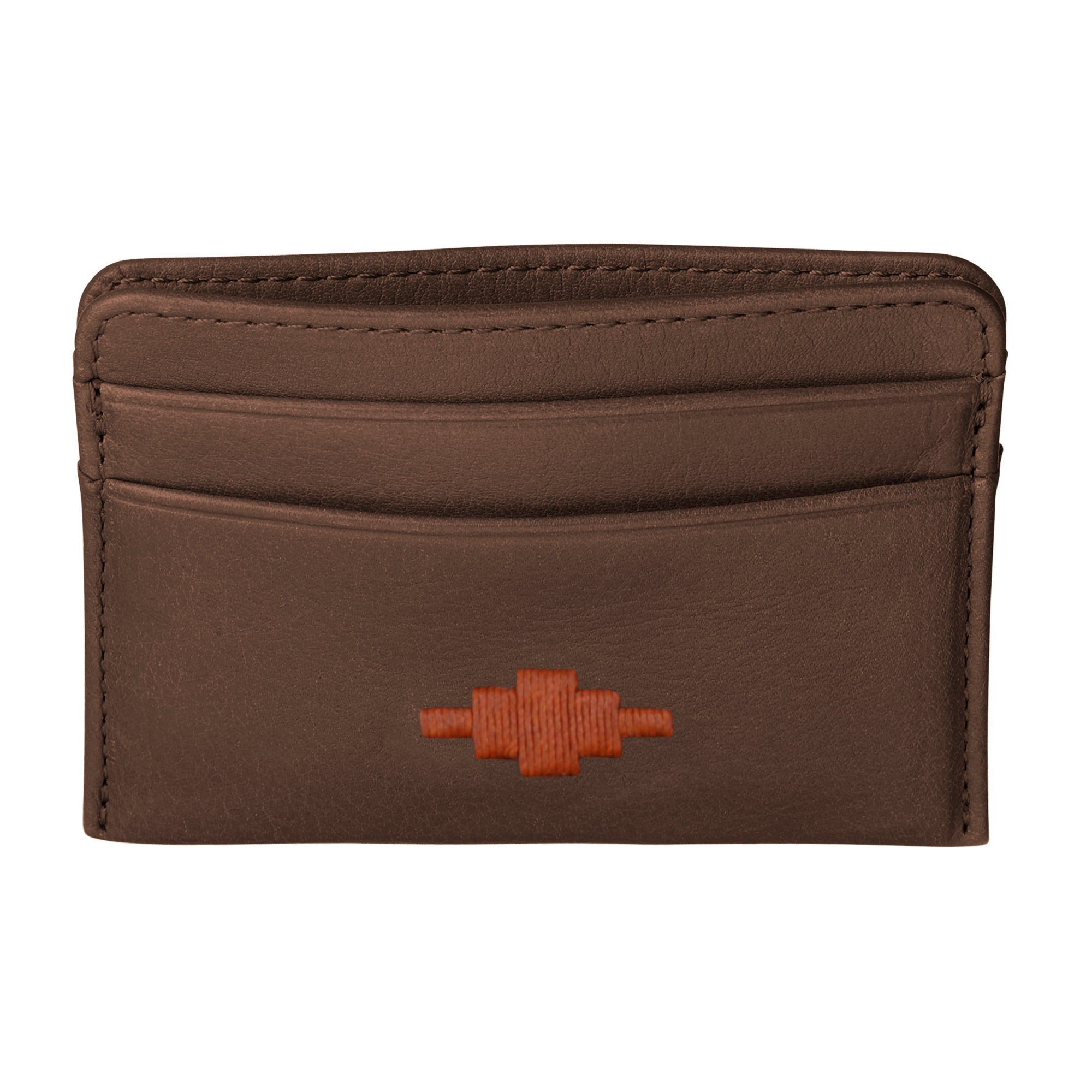 The front of this leather piece has been hand embroidered with the iconic pampa diamond, which echoes the peaks and troughs of the Andes Mountains. This traditional method of hand stitching derives from our pampeano belts, and incorporating this technique onto soft leather products is something that has never been attempted before. This credit card holder is the finest example of innovative South American artistry.