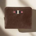 Verleihen Sie Ihren Accessoires eine einzigartige Note mit der Nena-Reißverschlusstasche aus edlem braunem Leder, wunderschön akzentuiert durch Nähte in Rosa, Creme oder Türkis. Diese kompakte und praktische Tasche ist 10,5 cm lang und 2,5 cm breit und verfügt über ein sicheres Reißverschlussfach für Münzen und sechs Kartenfächer für mühelose Organisation.