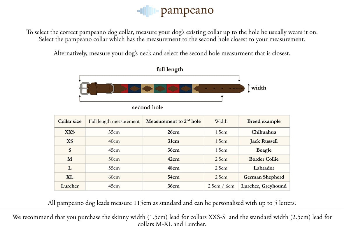 Alle unsere Pampeano-Hundeleinen sind 115 cm lang. Sie sind in den Breiten 1,5 cm und 2,5 cm erhältlich.