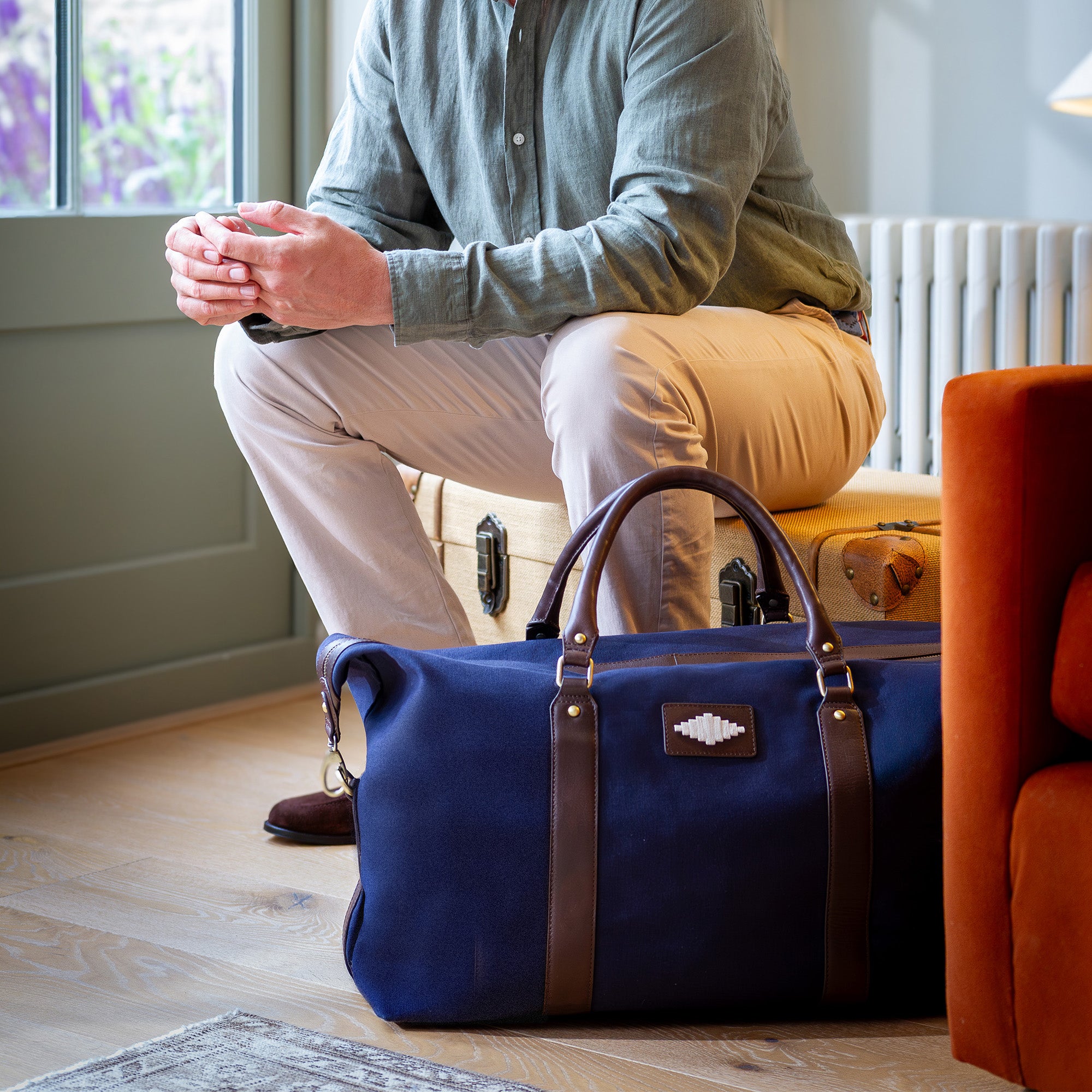 Unsere Reisetaschen sind die perfekten Begleiter für jede Reise. Sie sind in unser feinstes handverlesenes argentinisches Leder und Baumwollsegeltuch gehüllt und innen mit einem hellblauen Baumwollfutter gefüttert, einschließlich einer Innentasche mit Reißverschluss zur sicheren Aufbewahrung der wertvollsten Gegenstände . Jede unserer Pampeano-Reisetaschen verfügt über einen abnehmbaren Riemen zum einfachen Tragen und ist mit den ikonischen Nähten von Pampeano wunderschön veredelt (unifarbene Optionen sind verfügbar).