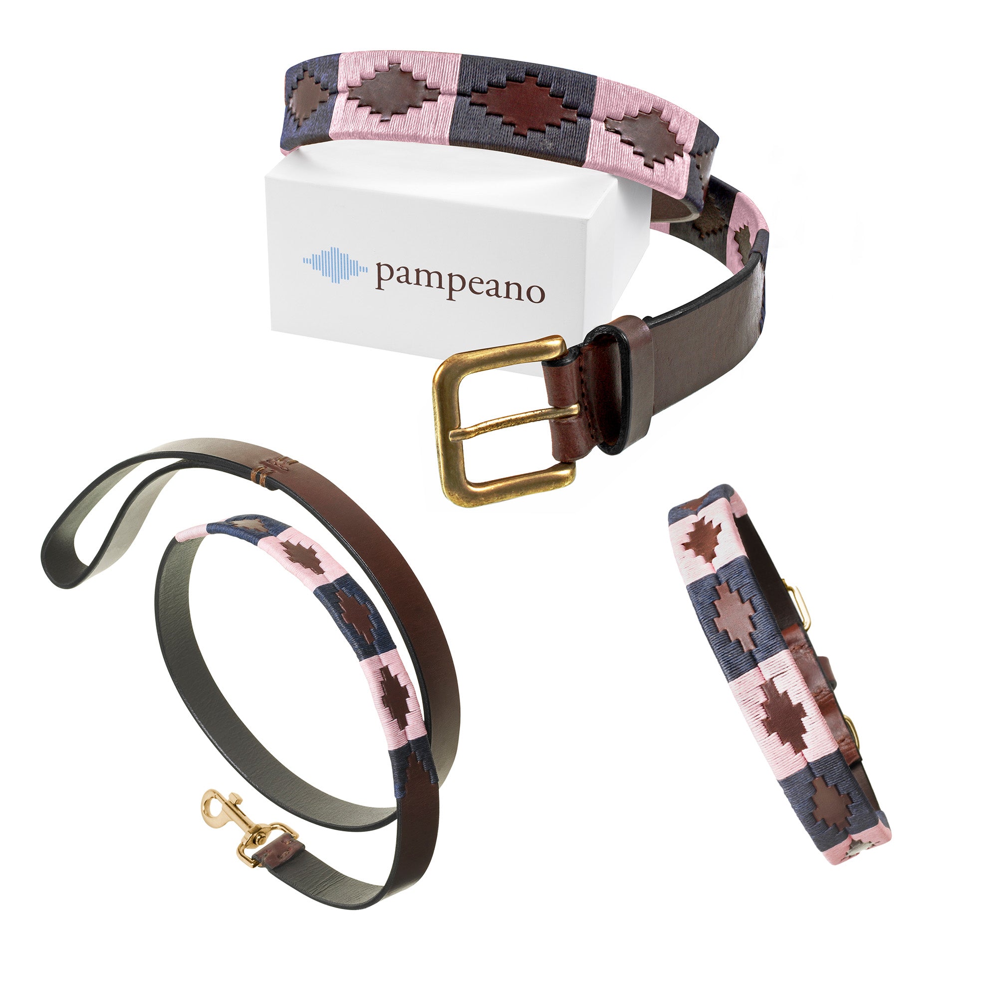 Dieses exklusive Geschenkpaket enthält einen Pampeano- Pologürtel, ein Hundehalsband und eine passende Leine aus den handgenähten argentinischen Lederkollektionen von Pampeano.