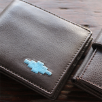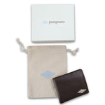Wählen Sie neben diesem Pampeano-Gürtel eine unserer Premium-Karten- oder Münzbörsen aus Leder, erhältlich in braunem, schwarzem, marineblauem und hellbraunem Leder, alle mit einem leuchtenden einzelnen Pampa-Diamanten auf der Vorderseite, umhüllt von einem weichen Bandera-blauen Wildlederfutter.