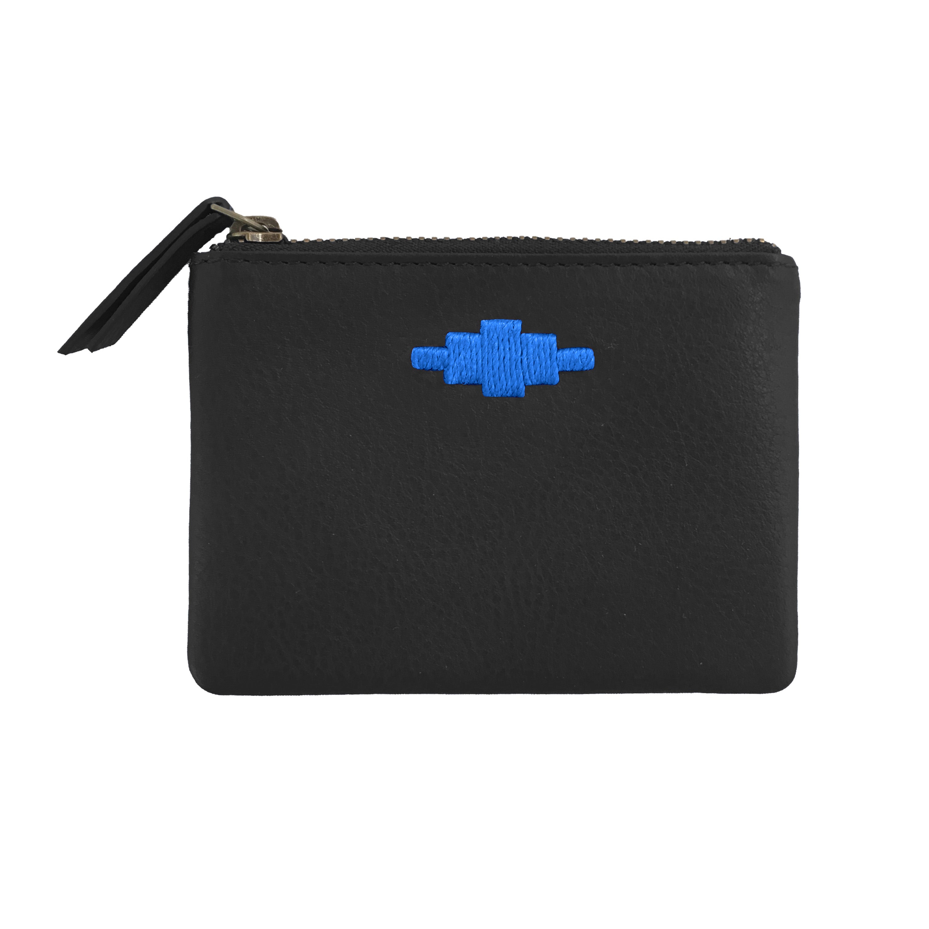 Die elegante Cambio-Geldbörse aus hochwertigem schwarzem Leder ist die perfekte Aufbewahrung für Münzen, Scheine und Karten. Luxuriöses schwarzes Leder bildet den Korpus der Geldbörse, die mit dem charakteristischen Pampa-Diamanten von Pampeano verziert ist, der mit cremefarbenem Garn handgenäht ist. Dank des filigranen Stils der Cambio kann jeder dieses modische Accessoire tragen.
