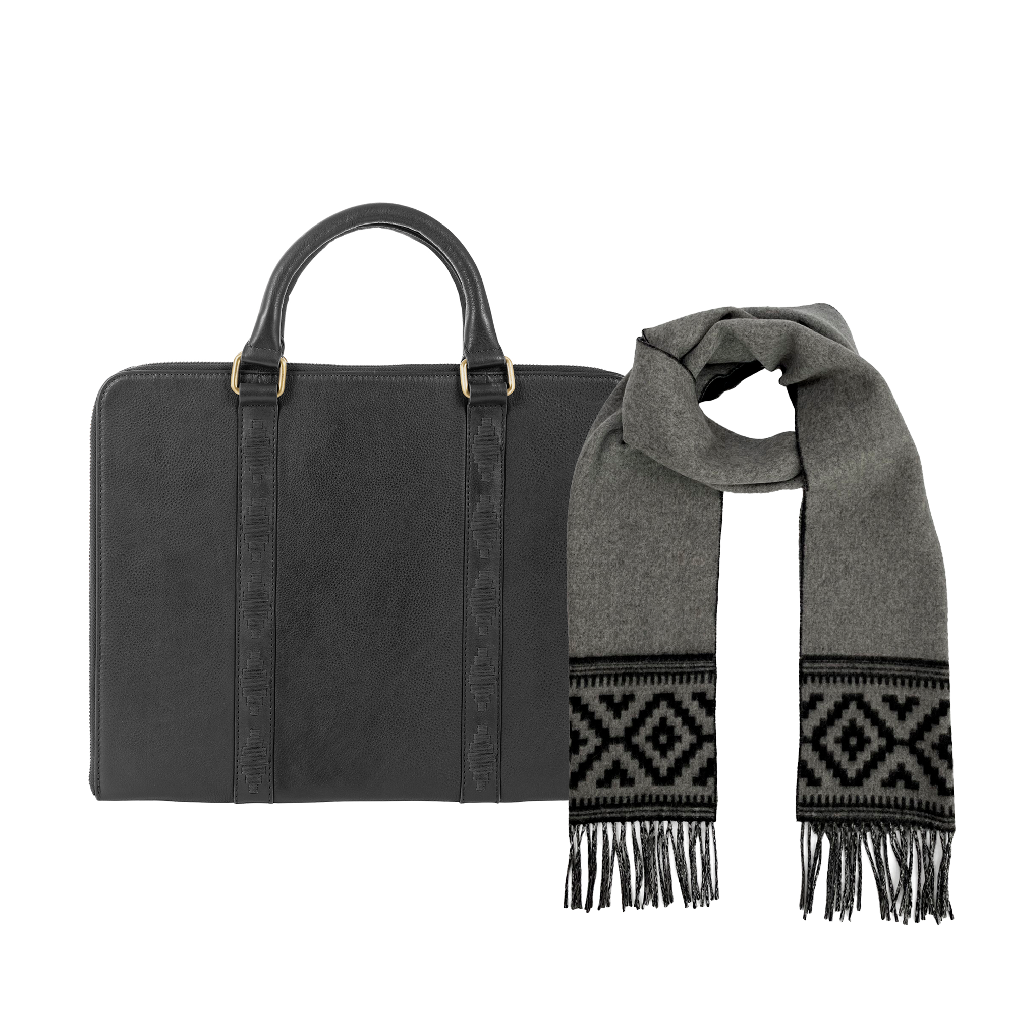 Clara Aktentasche mit kostenlosem Azteca-Schal – Schwarzes Leder