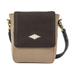 Bandolera Umhängetasche – Braunes Leder und Sand-Canvas