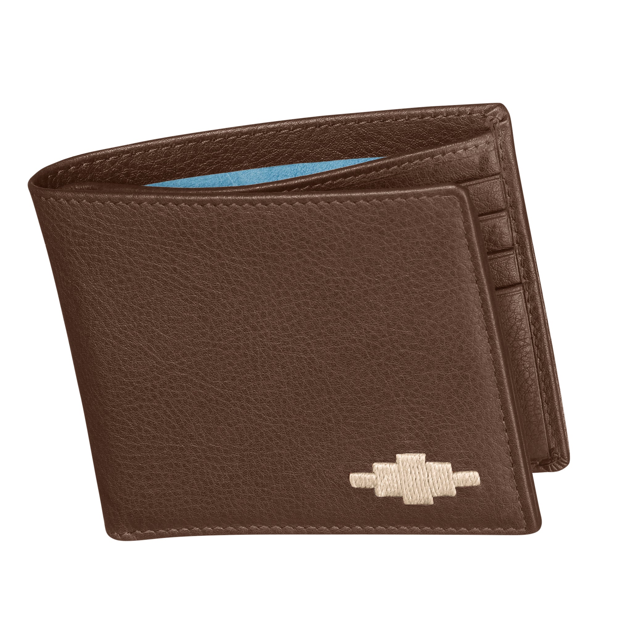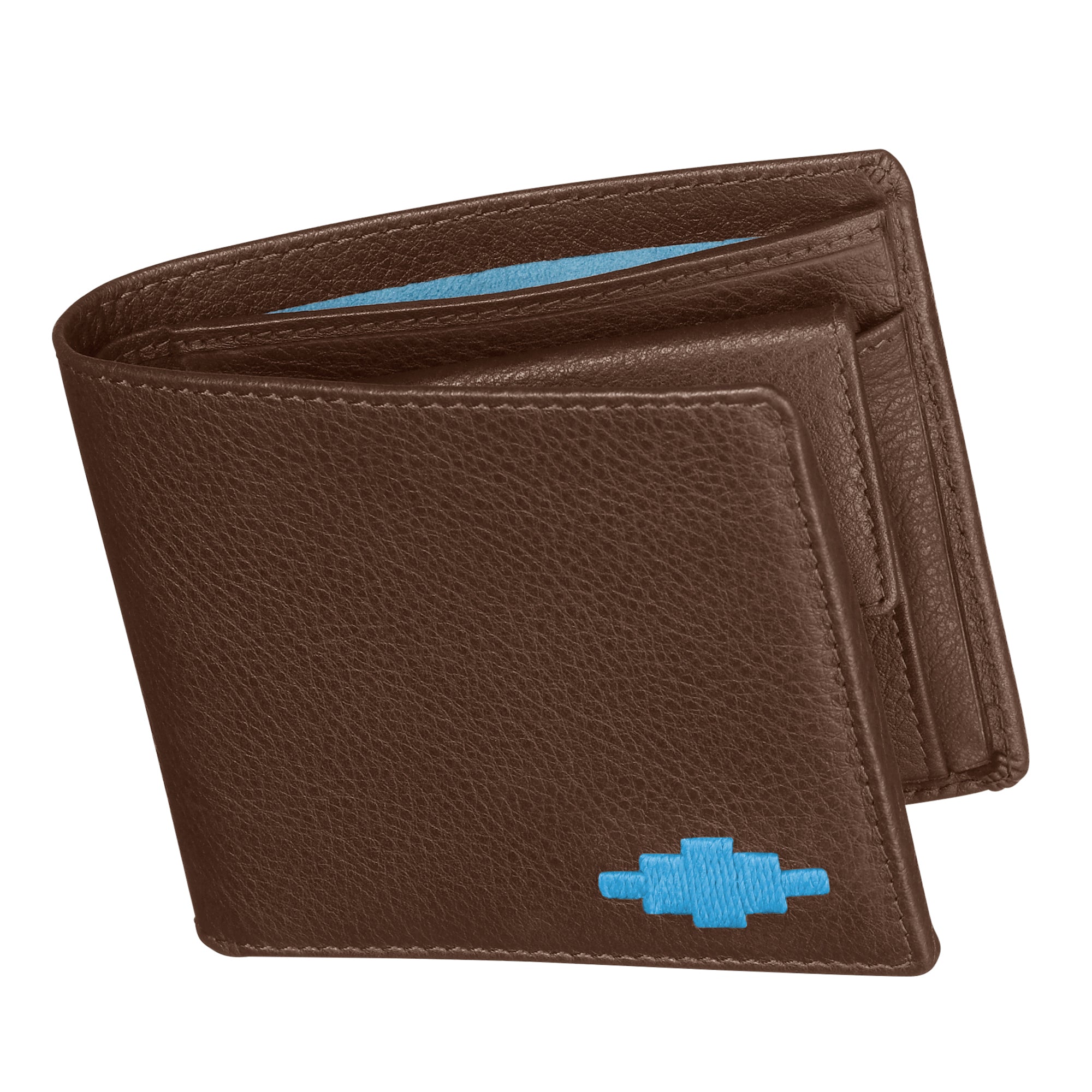 Auf die Vorderseite der Brieftasche wurde der ikonische Pampa-Diamant von Hand gestickt, der durch Pampeanos weltbekannte Pologürtel aus Leder berühmt wurde. Diese werden in Südamerika von echten Kunsthandwerkern in einem über vier Stunden dauernden Prozess von Hand genäht. Die in Wachs getauchten Sattlerfäden wurden in Pampeanos elegantem Creme und leuchtendem Blau ausgewählt und bilden einen kräftigen Kontrast zu dem warmen nussbraunen Leder. Diese Handnähtechnik ist eine traditionelle Praxis in Südamerika, die über Generationen von Kunsthandwerkern gelehrt und weitergegeben wurde und bis zum heutigen Tag nicht maschinell reproduziert werden kann. Nie zuvor wurde diese Methode anstelle des dicken, festen Leders der Pologürtel von Pampeano für Brieftaschen ausprobiert. Diese Dinero-Kartenbrieftasche ist ein echtes Stück Innovation und vereint südamerikanisches Erbe mit modernem britischem Design.