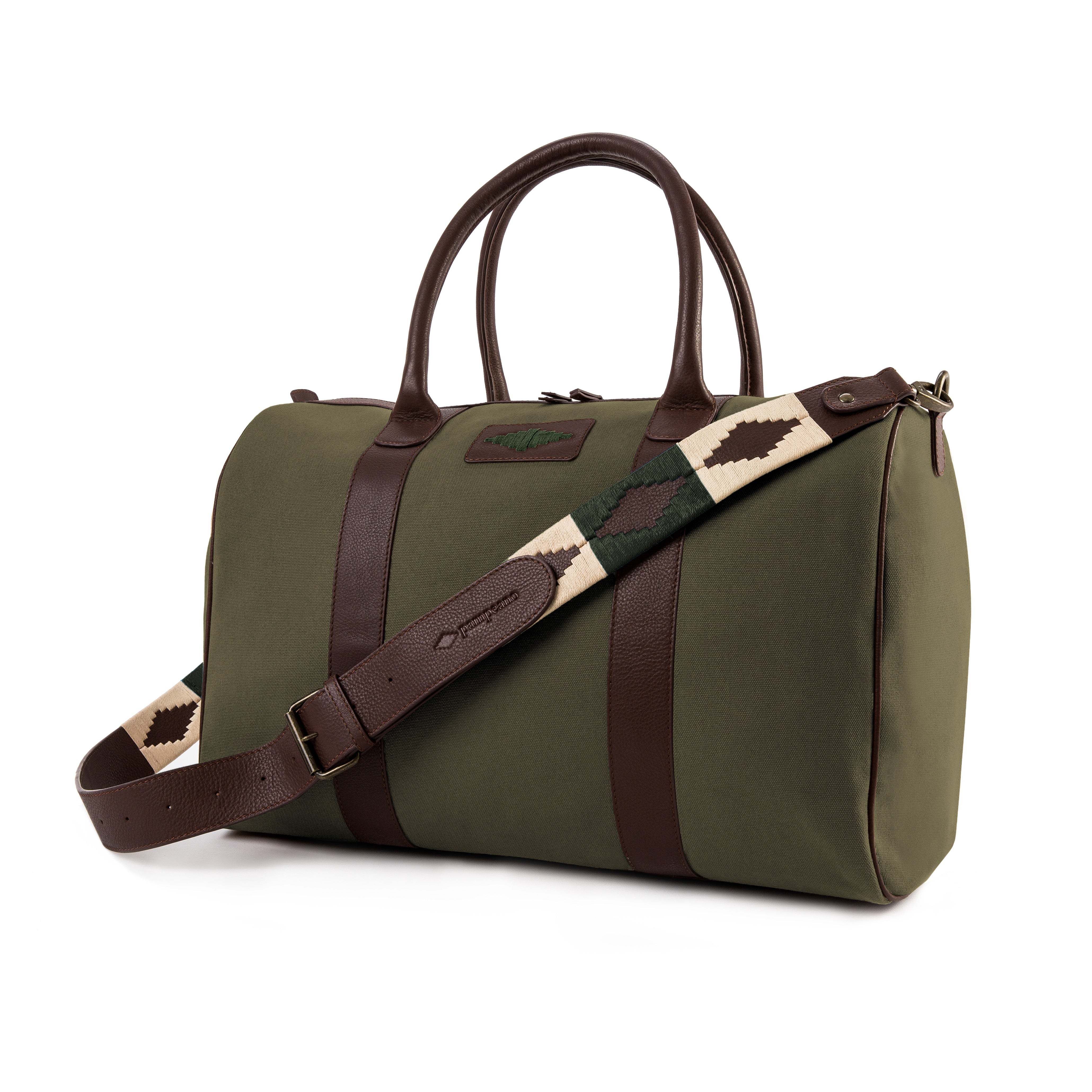 Kleine Reisetasche Varon – Braunes Leder und Forest Canvas