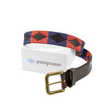 Et iøynefallende gaucho-belte i dyp marineblå og terrakottaoransje, håndvevd med omhu for å gjenspeile den argentinske pampas-ånden. Tilpasset preging tilgjengelig.