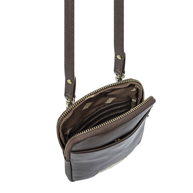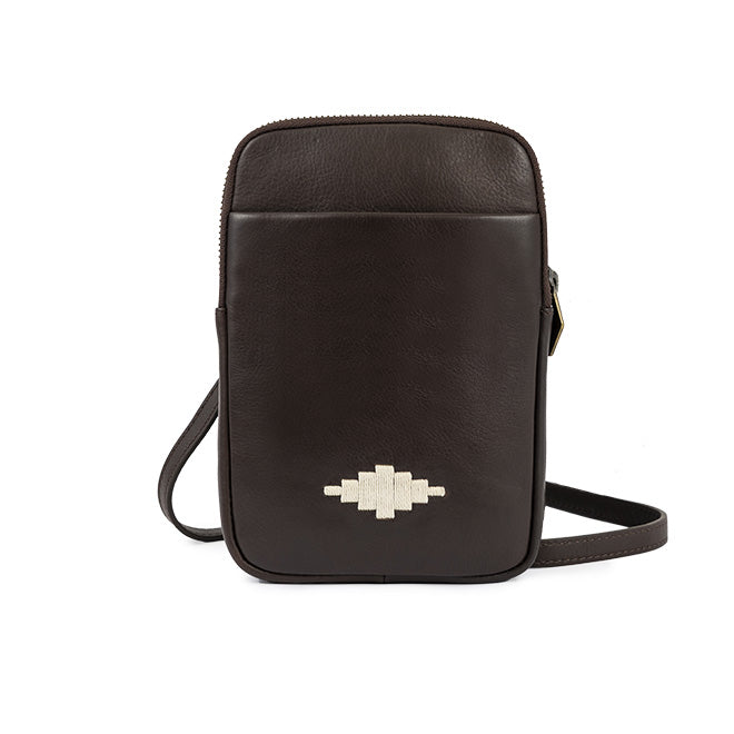 Denne kompakte crossbody-telefonvesken er designet for dager når du bare trenger det viktigste. Den er laget av mykt brunt skinn og har vår signatur pampa-diamant for å hedre våre Argentina-inspirerte røtter. En ytre lomme med magnetisk trykknapp gir enkel tilgang til reisekort, mens den avtakbare crossbody-stroppen muliggjør fleksibel bæring.