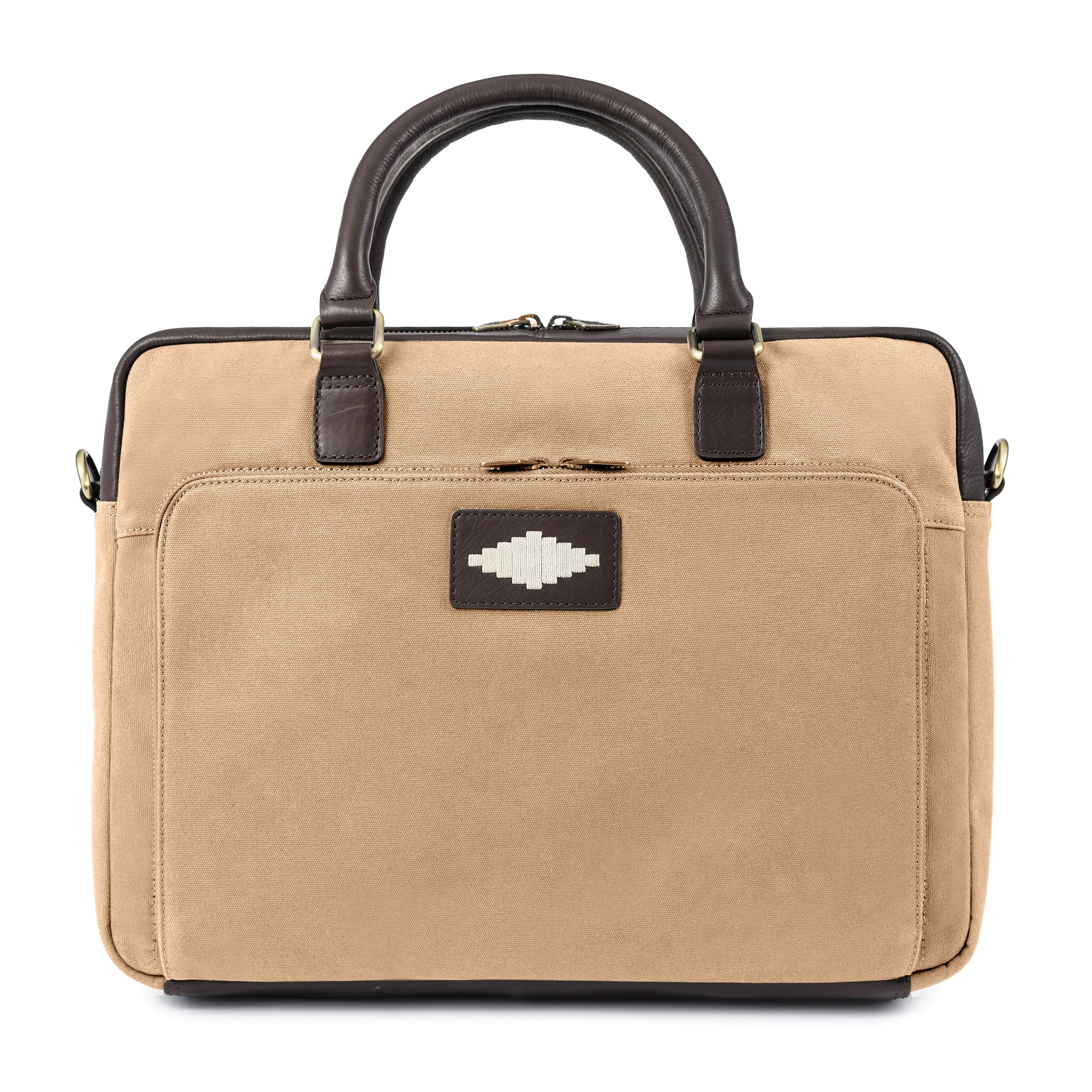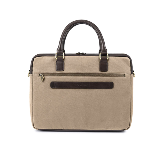 Mensajero-koffert - brunt skinn og sandfarget lerret