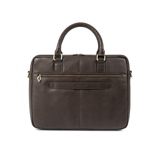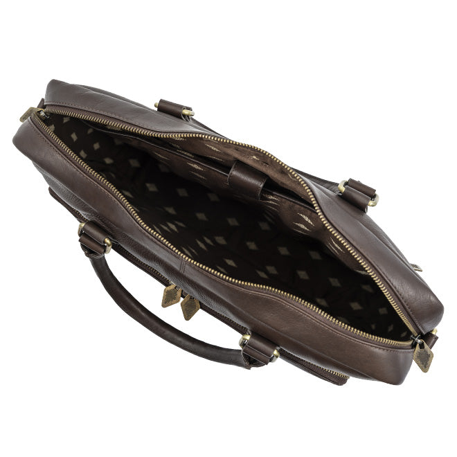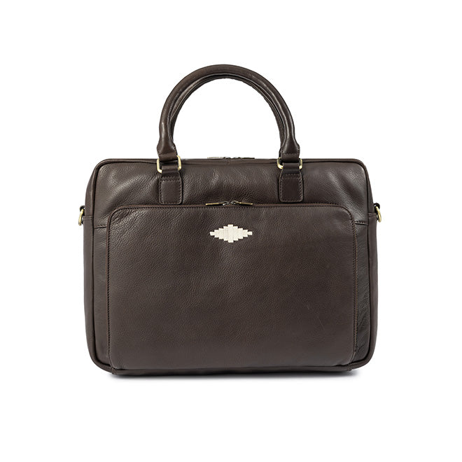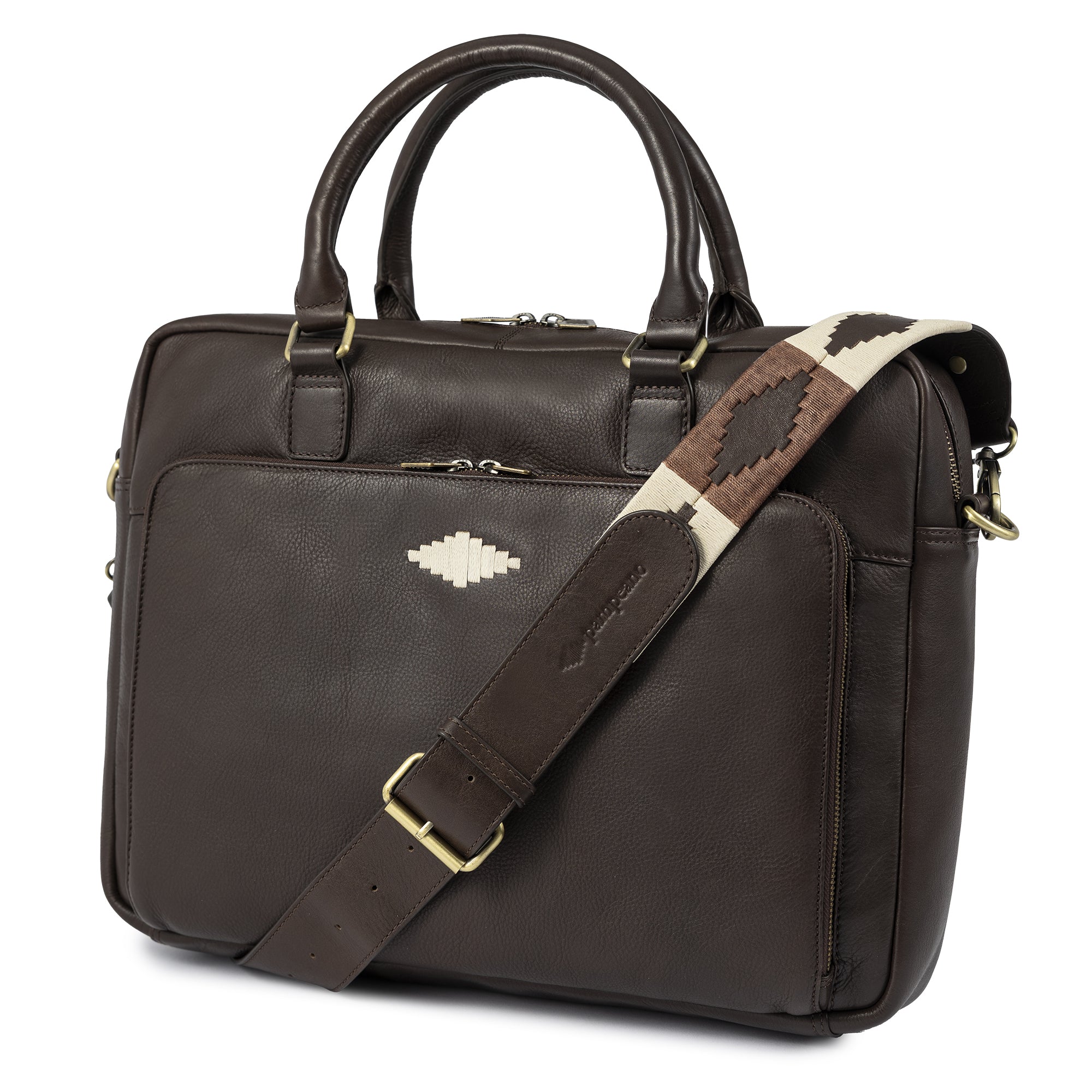 Løft stilen din med denne førsteklasses laptop-vesken for menn, laget av rikt brunt Havana-skinn og detaljert med Pampeanos signaturhåndsydde Pampa-diamantmotiv. Med messingdetaljer, polstrede håndtak og et romslig interiør for bærbare datamaskiner opptil 18 tommer blander den tradisjonsrikt design med moderne funksjonalitet for hverdagssikkerhet.
