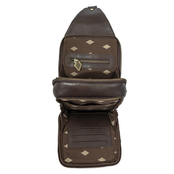 Pequeno er en liten slingveske for menn, oppkalt etter det spanske ordet for «liten». Den er laget av vegetabilsk garvet skinn og har fire glidelåslommer – inkludert en romslig hoveddel, kortspor og lommer med rask tilgang foran og bak. En justerbar lærreim og solid messingbeslag sikrer en pålitelig konstruksjon og komfort, mens subtile håndsydde detaljer nikker til håndverk.