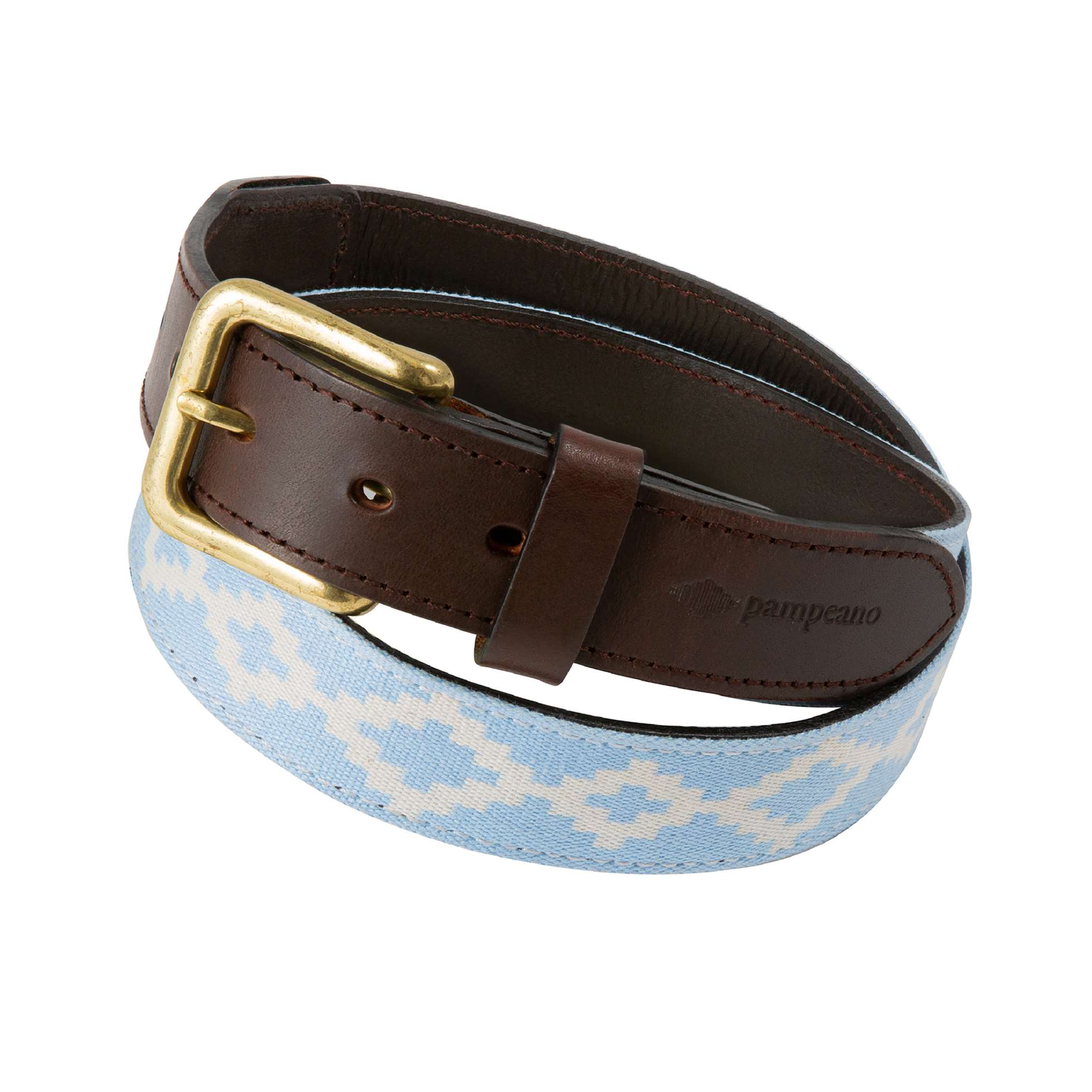 Cincha pampeano-polobeltet i Havana-brunt skinn har en argentinsk-inspirert ånd, med himmelblå og hvite pampa-diamanter sydd for hånd for en tidløs appell.