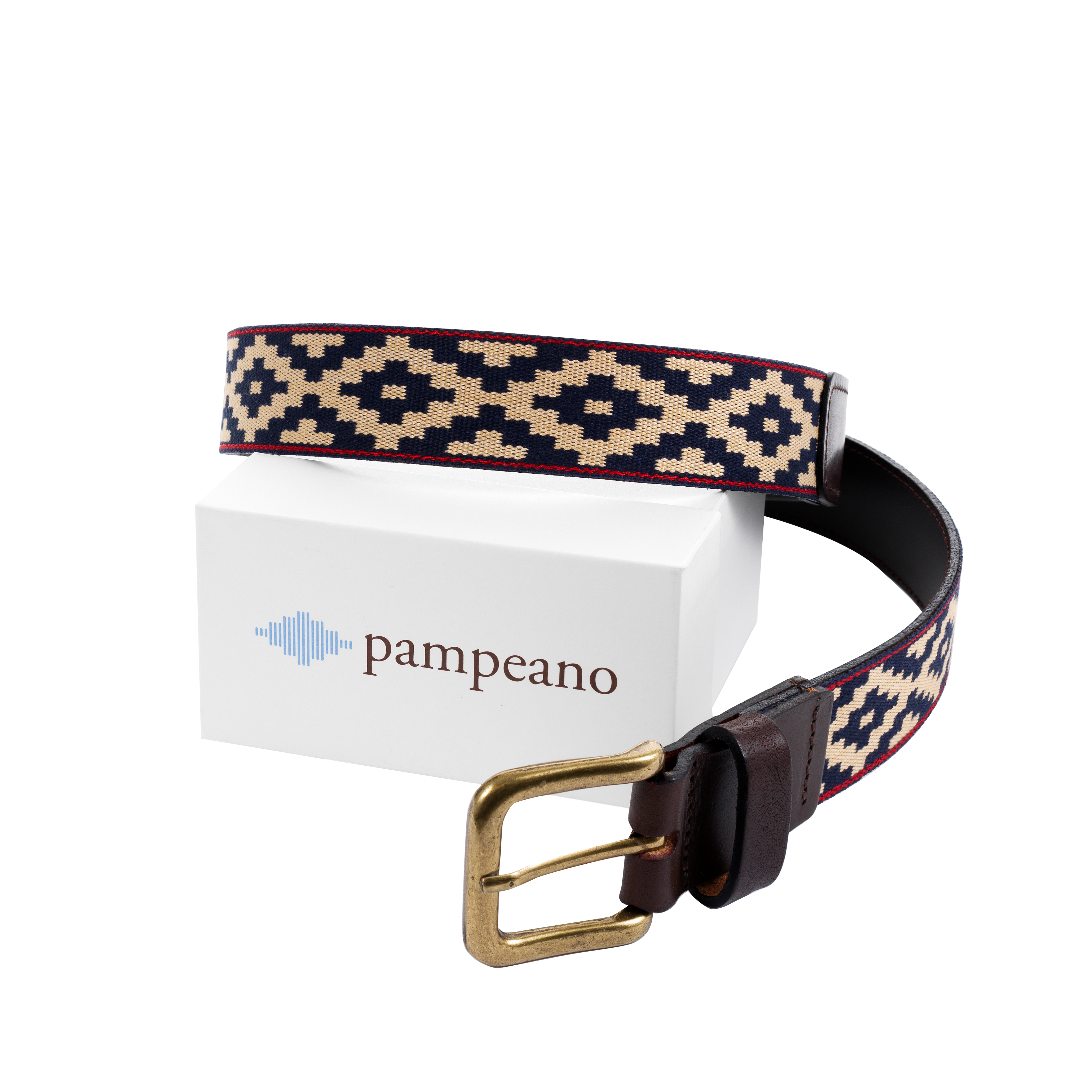 Cincha pampeano-beltet kombinerer rikt havanabrunt skinn med detaljert marineblå broderi, som gjenspeiler polobanenes ånd.