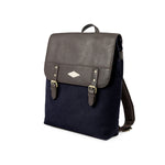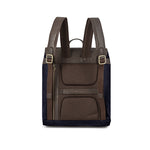 Mochila-ryggsekk - brunt skinn med marineblått lerret