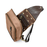 Pequeno Skulderveske - Brunt Skinn og Sandfarget Kanvas