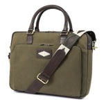 Denne laptopvesken er laget av slitesterkt skoggrønt lerret og har rike skinndetaljer, og er laget for å følge eventyrene dine – enten du navigerer i bygatene eller er på utflukter utenfor allfarvei. Med et strukturert, rent design og sikker plass til bærbare datamaskiner, dokumenter og nødvendigheter, blander den praktisk design med tidløs estetikk.
