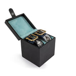 Eskens innside er foret med en myk turkisfarget farge, som gir en fantastisk kontrast til utsiden samtidig som den beskytter beltene dine mot riper. Denne allsidige esken er omhyggelig laget av dyktige håndverkere, og er ideell for personlig bruk eller som en omtenksom gave.