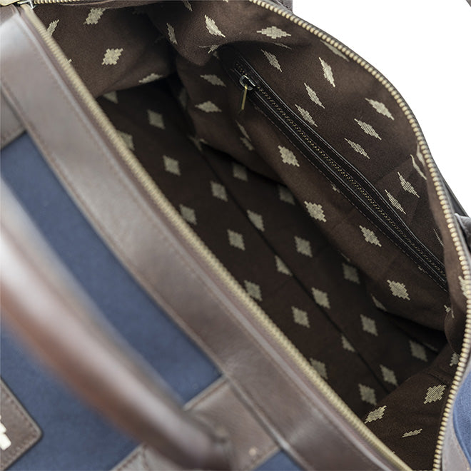 Caballero Stor Reiseveske - Brunt Skinn og Marineblått Kanvas