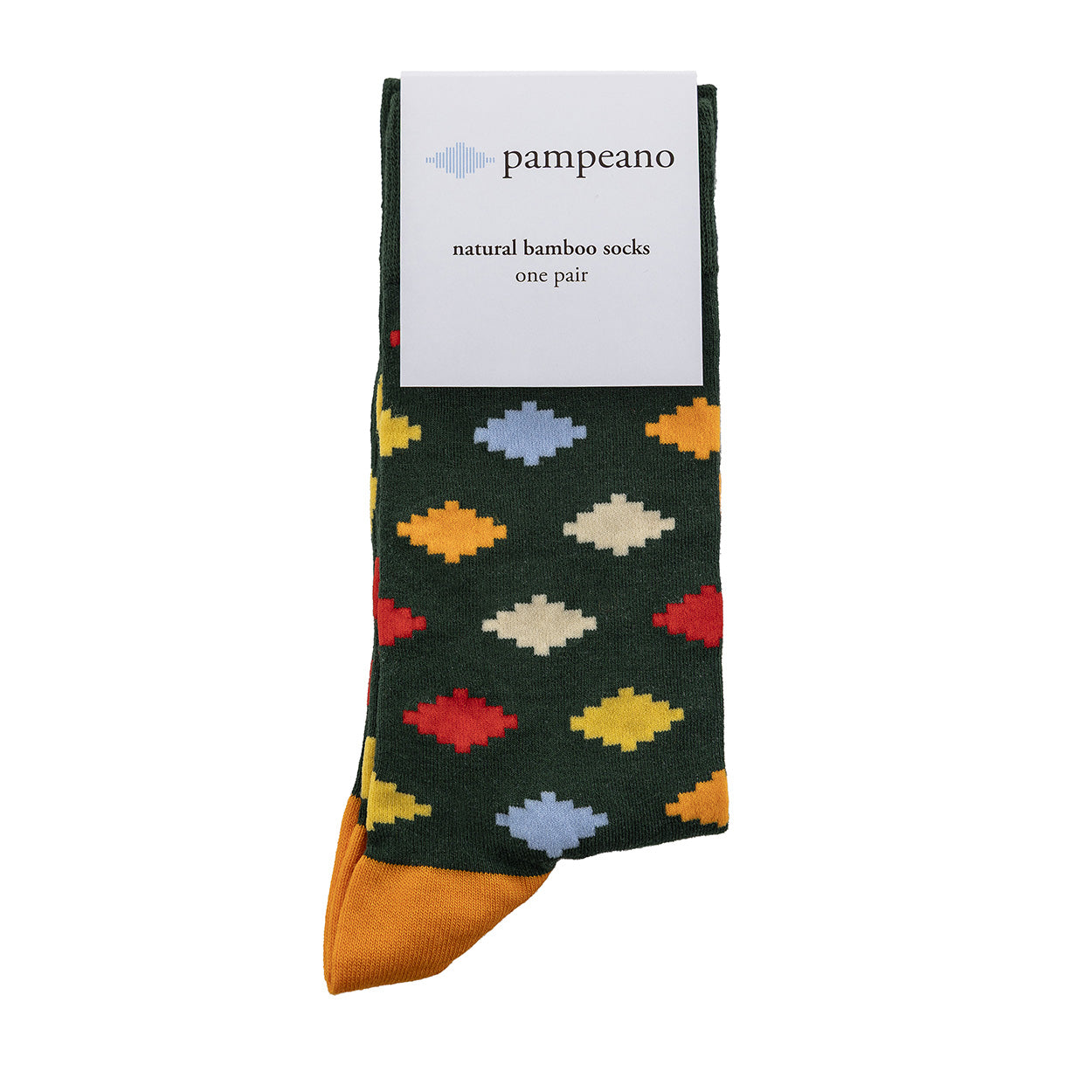 Rike, festlige toner i pampeano Navidad-designet bringer varme og tradisjon til hverdagsbruk. Disse mønstrede bambussokkene er pustende, termoregulerende og perfekte som gave. Inspirert av de kulturpregede aztekiske mønstrene, pakker Navidad føttene dine inn i naturlig mykhet, ideelt for ferieturer eller koselige kvelder hjemme.