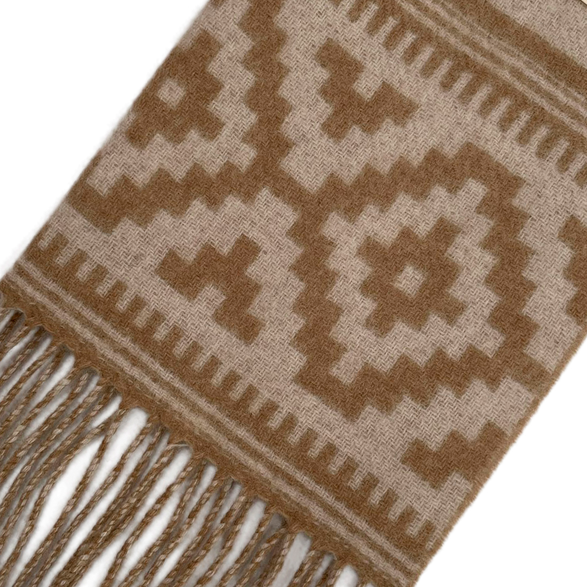 Elevate your wardrobe with the timeless elegance of this Azteca Wool Scarf in cream. Handcrafted from 100% premium wool, this versatile scarf measures 206 cm in length and 33 cm in width, offering a luxurious, cozy feel. The intricate design features a traditional Aztec-inspired pattern, rooted in rich cultural history, making it both a stylish and meaningful accessory. Ideal for any season, this scarf complements a wide range of outfits, whether you’re looking to add a touch of sophistication to neutrals or contrast vibrant colours. Perfect for both men and women, this unisex scarf is a must-have addition to your collection.