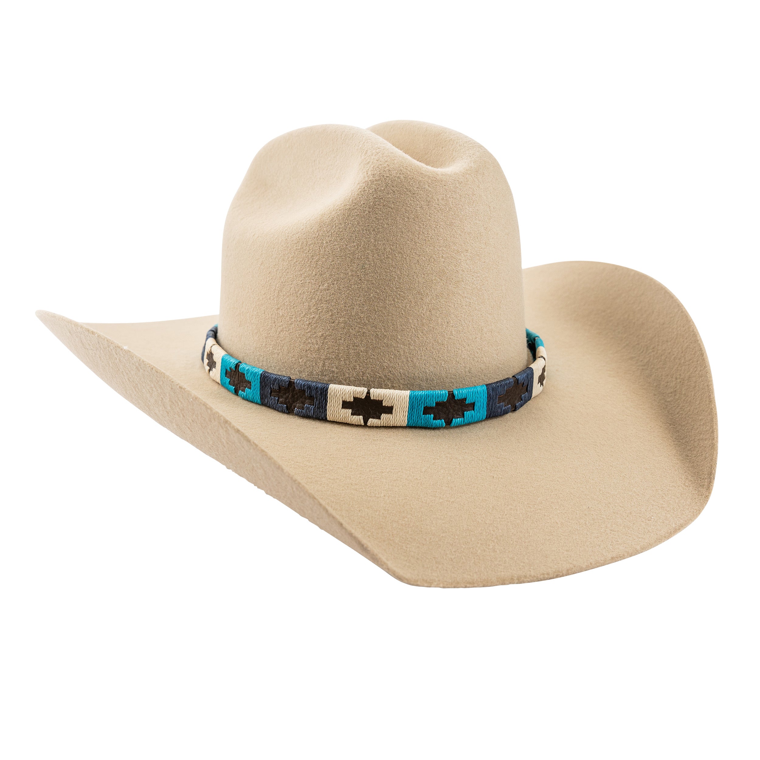 Pampa Leather Hat Band - Turquoise, Navy and Cream Blocks
